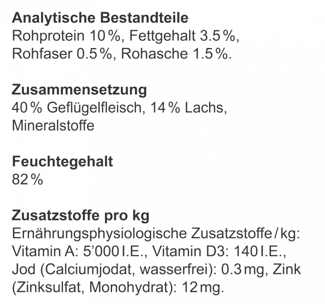 Bei der offenen Deklaration werden die einzelnen Inhaltsstoffe des Futters in absteigender Reihenfolge ihrer Gewichtsanteile aufgeführt. Der Inhaltsstoff mit dem grössten Anteil steht also an erster Stelle.